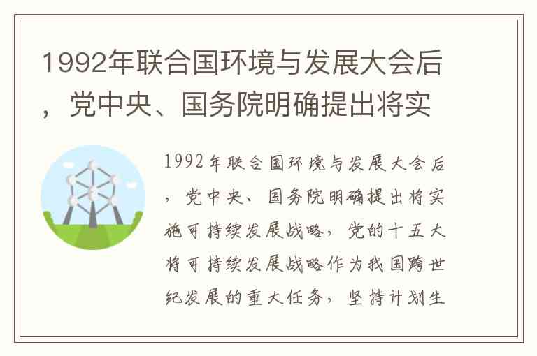 1992年联合国环境与发展大会后,党中央、国务院明确提出将实施可持续发展战略,党的十五大将可持续发展战略作为我国跨世纪发展的重大任务,坚持计划生育和保护环境的基本国策,正确处理经济发展同(A. 人口、资源、环境)的关系。