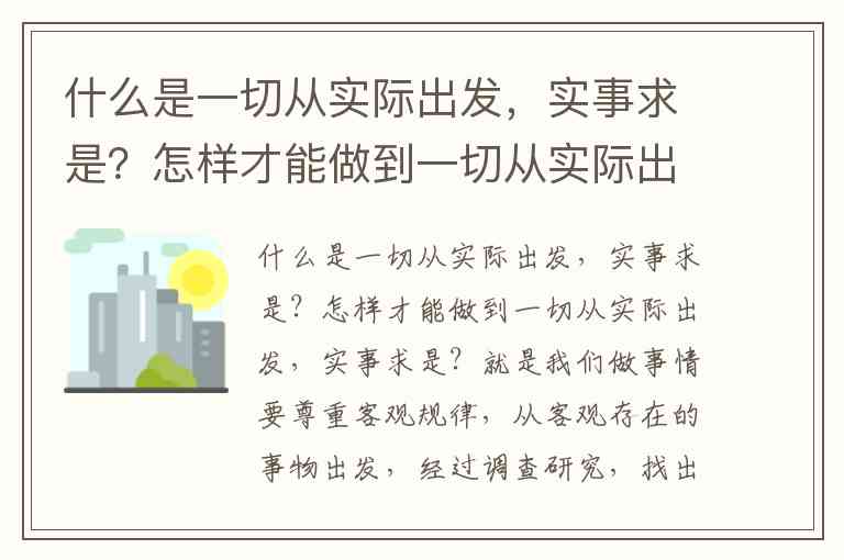 一切从实际出发,实事求是,就是我们做事情要尊重客观规律,从客观存在的事物出发,经过调查研究,找出事物本身固有的而不是臆造的规律性,以此作为行动的依据。