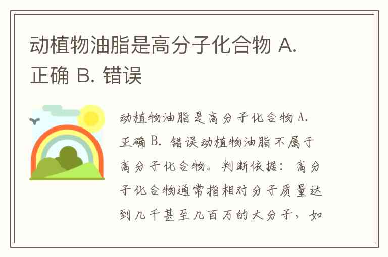 动植物油脂是高分子化合物 A. 正确 B. 错误