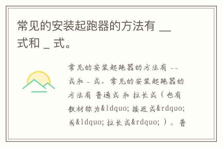 常见的安装起跑器的方法有 普通式 和 拉长式(也有教材称为“接近式”或“拉长式”)。