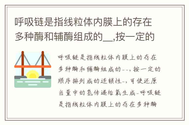 呼吸链是指线粒体内膜上的存在多种酶和辅酶组成的电子传递链,按一定的顺序排列成的连锁性氧化还原反应体系,可使还原当量中的氢传递给氧生成水。