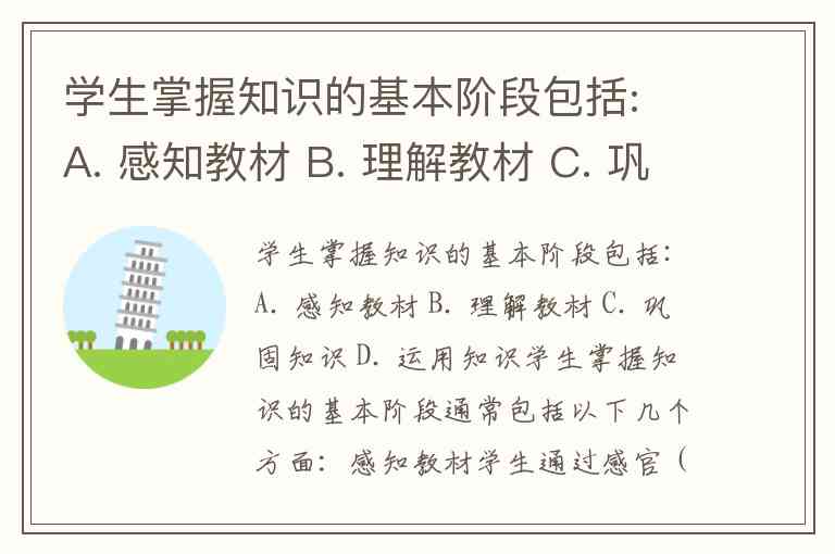 学生掌握知识的基本阶段通常包括以下几个方面:
