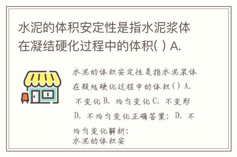 因此,水泥的体积安定性强调的是体积变化的均匀性,而不是是否变化或是否变形,故答案为 D。