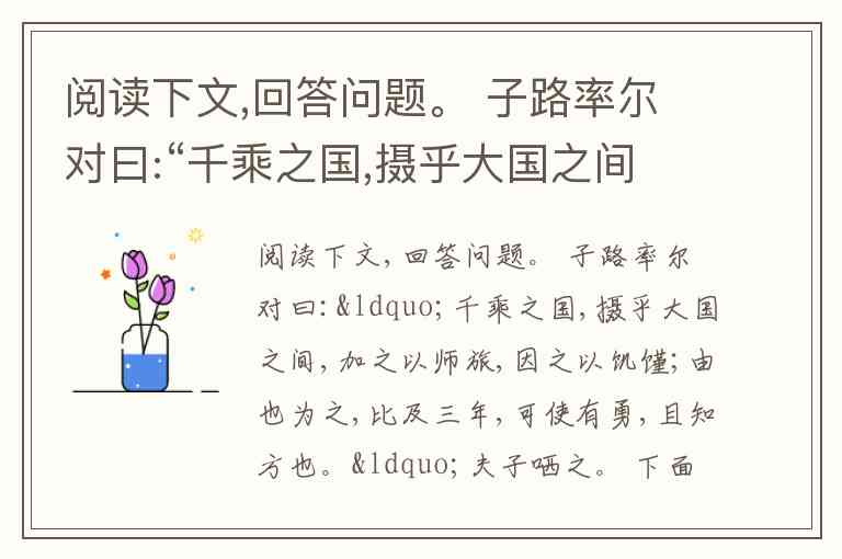 A 项 正确。子路所言确实是治理一个“千乘之国”夹在大国之间、遭遇战争和饥荒的情况,目标是通过三年使民众“有勇”且“知方(懂得道义)”,所以这是从困境到勇而知义的转变。