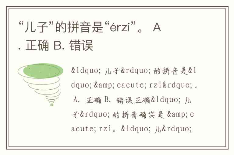 “儿子”的拼音是“érzi”。 A. 正确 B. 错误
