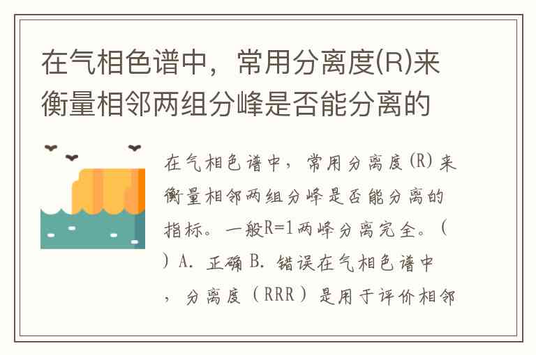 在气相色谱中,常用分离度(R)来衡量相邻两组分峰是否能分离的指标。一般R=1两峰分离完全。() A. 正确 B. 错误