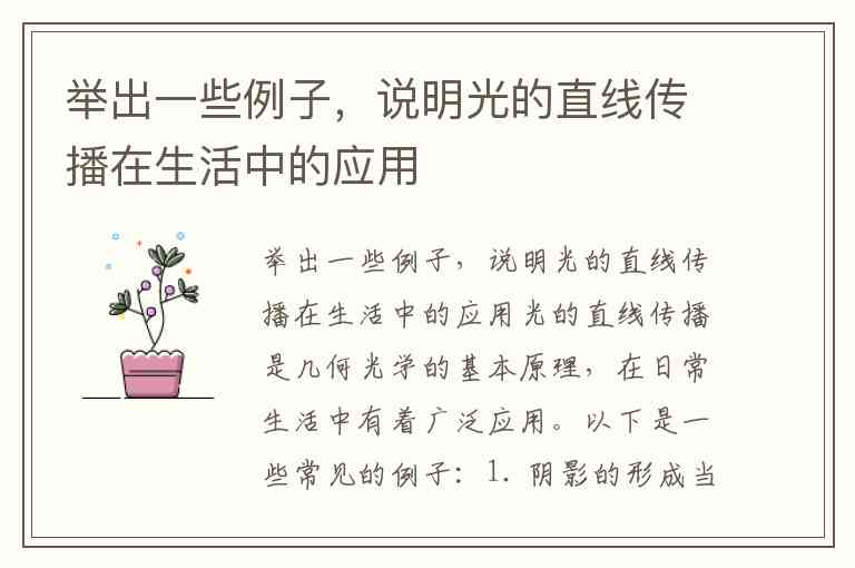光的直线传播是几何光学的基本原理,在日常生活中有着广泛应用。以下是一些常见的例子: