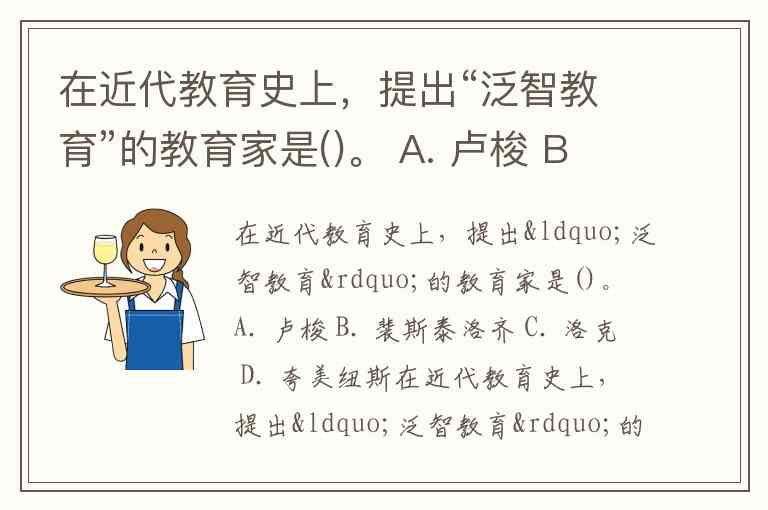 在近代教育史上,提出“泛智教育”的教育家是()。 A. 卢梭 B. 裴斯泰洛齐 C. 洛克 D. 夸美纽斯