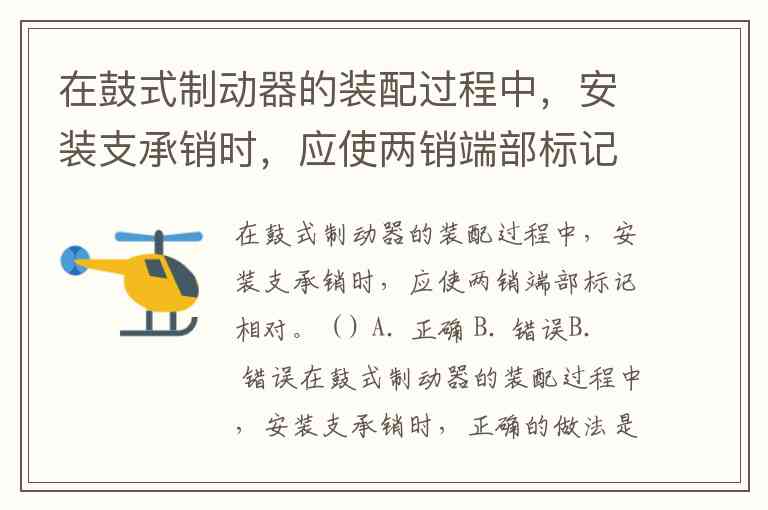 在鼓式制动器的装配过程中,安装支承销时,应使两销端部标记相对。 ( ) A. 正确 B. 错误