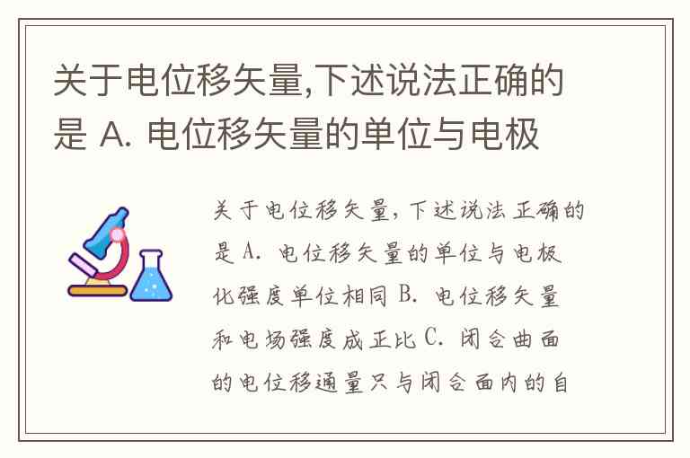 关于电位移矢量,下述说法正确的是 A. 电位移矢量的单位与电极化强度单位相同 B. 电位移矢量和电场强度成正比 C. 闭合曲面的电位移通量只与闭合面内的自由电荷有关 D. 电位移矢量只与自由电荷有关