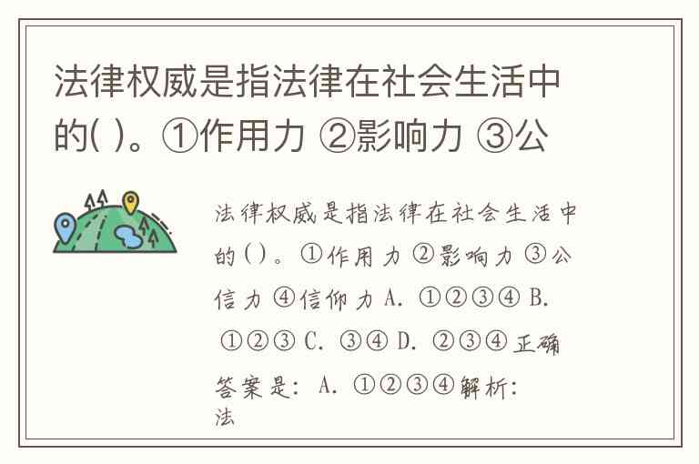 法律权威是指法律在社会生活中的( )。①作用力 ②影响力 ③公信力 ④信仰力 A. ①②③④ B. ①②③ C. ③④ D. ②③④