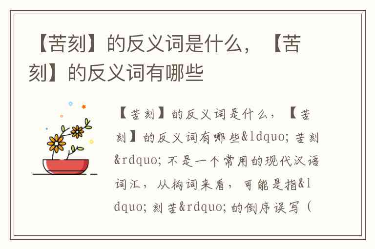 【苦刻】的反义词是什么,【苦刻】的反义词有哪些