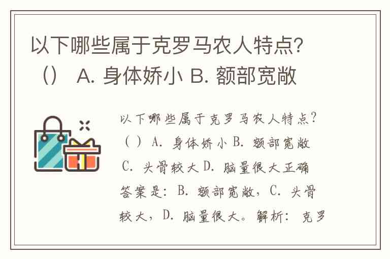 以下哪些属于克罗马农人特点?() A. 身体娇小 B. 额部宽敞 C. 头骨较大 D. 脑量很大