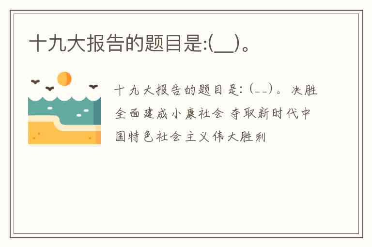 十九大报告的题目是:(__)。