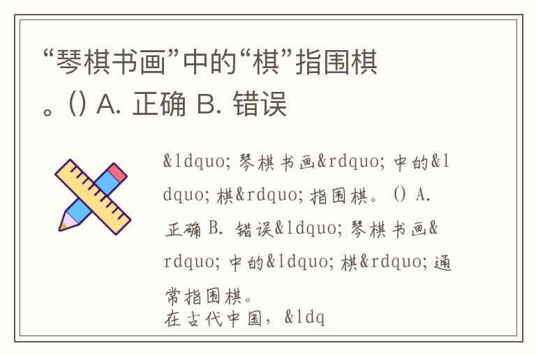 “琴棋书画”中的“棋”指围棋。() A. 正确 B. 错误