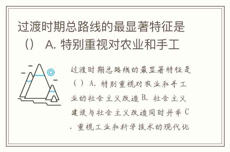 过渡时期总路线的最显著特征是() A. 特别重视对农业和手工业的社会主义改造 B. 社会主义建设与社会主义改造同时并举 C. 重视工业和科学技术的现代化 D. 强调三大改造同时进行
