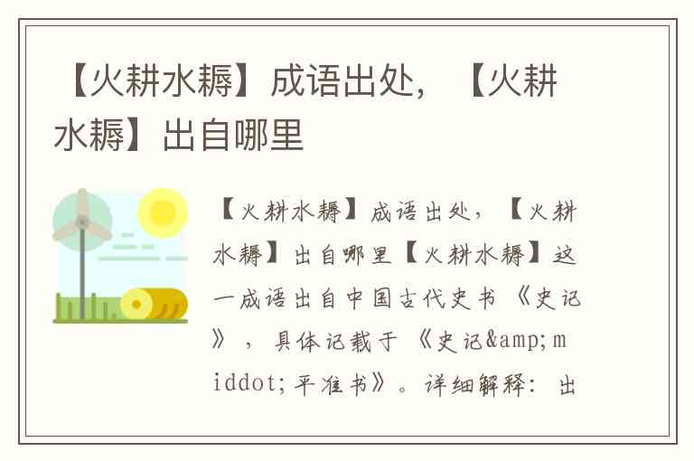 【火耕水耨】这一成语出自中国古代史书 《史记》 ,具体记载于 《史记·平准书》。