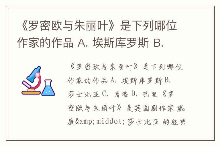《罗密欧与朱丽叶》是下列哪位作家的作品 A. 埃斯库罗斯 B. 莎士比亚 C. 马洛 D. 巴里