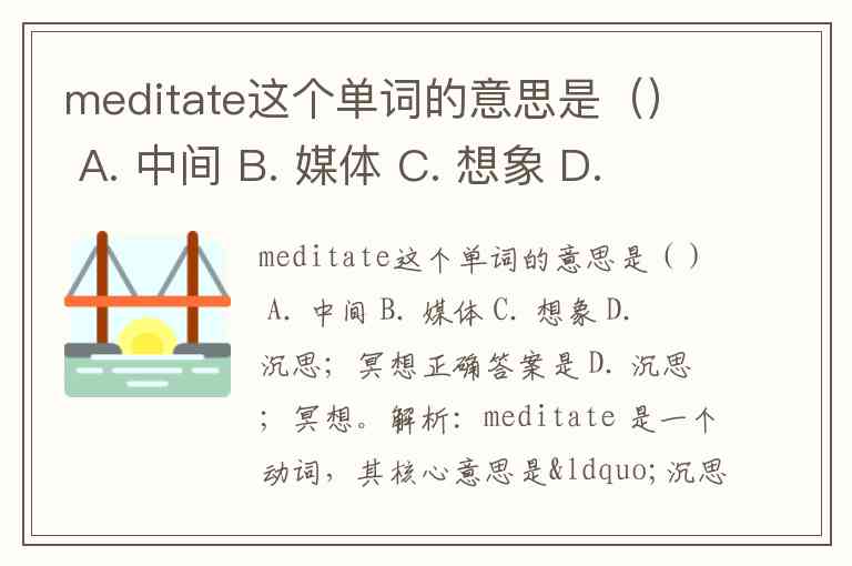 meditate这个单词的意思是() A. 中间 B. 媒体 C. 想象 D. 沉思;冥想