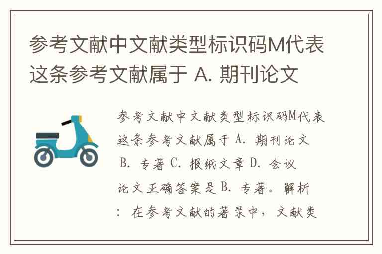 参考文献中文献类型标识码M代表这条参考文献属于 A. 期刊论文 B. 专著 C. 报纸文章 D. 会议论文