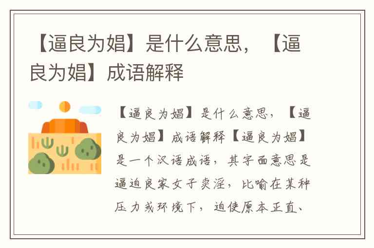 【逼良为娼】是什么意思,【逼良为娼】成语解释