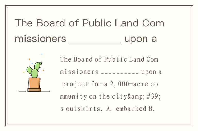 The Board of Public Land Commissioners __________ upon a project for a 2,000-acre community on the city's outskirts. A. embarked B. embedded C. embodied D. embraced