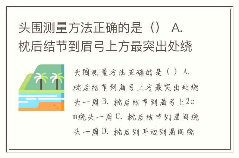 选项中与标准方法最接近的是 A:枕后结节到眉弓上方最突出处绕头一周。