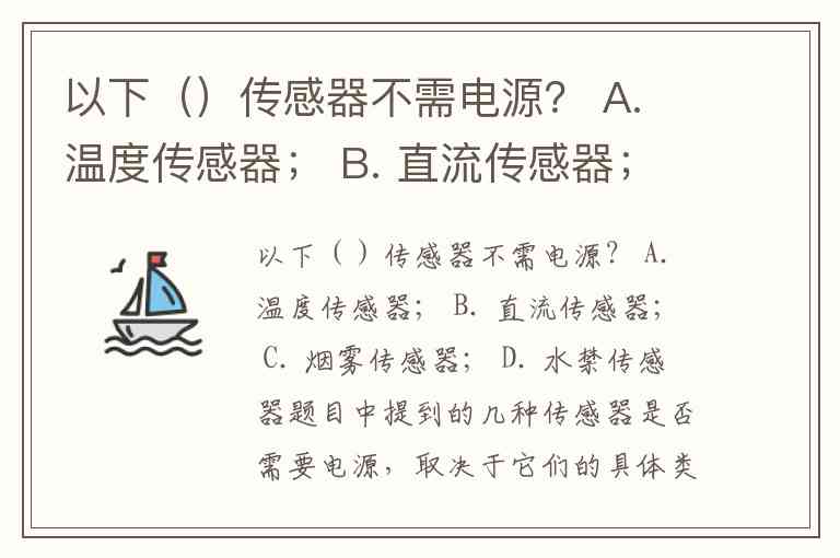 以下()传感器不需电源? A. 温度传感器; B. 直流传感器; C. 烟雾传感器; D. 水禁传感器