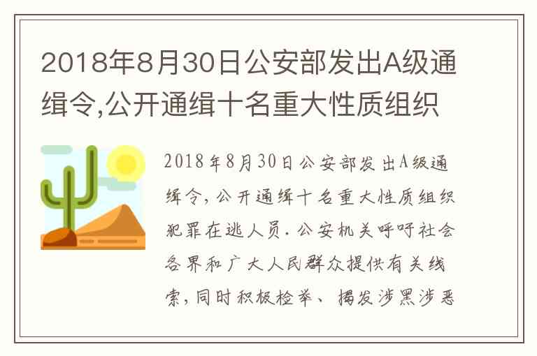 公安部发出A级通缉令,通缉重大黑社会性质组织犯罪在逃人员。
