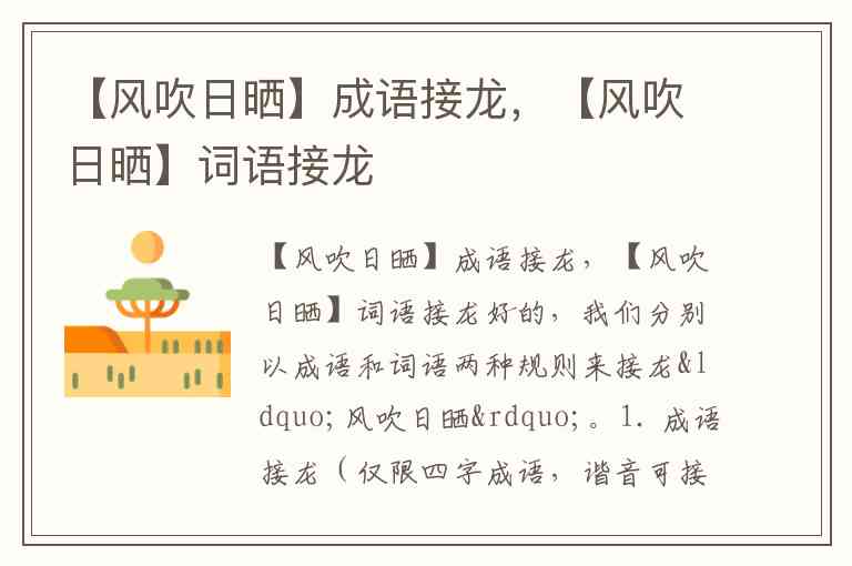 好的,我们分别以成语和词语两种规则来接龙“风吹日晒”。