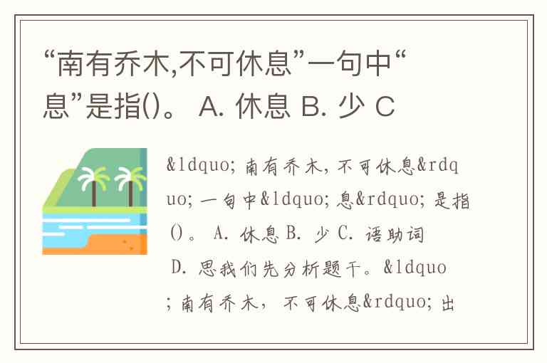 “南有乔木,不可休息”一句中“息”是指()。 A. 休息 B. 少 C. 语助词 D. 思