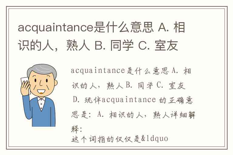 acquaintance是什么意思 A. 相识的人,熟人 B. 同学 C. 室友 D. 玩伴