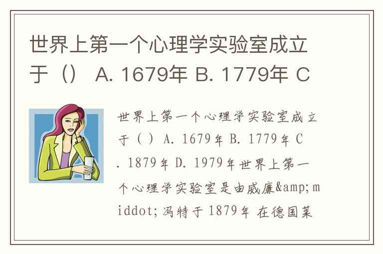 世界上第一个心理学实验室成立于() A. 1679年 B. 1779年 C. 1879年 D. 1979年