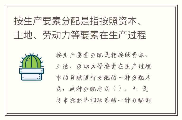 按生产要素分配是指按照资本、土地、劳动力等要素在生产过程中的贡献进行分配的一种分配方式,这种分配方式()。 A. 是与市场经济相联系的一种分配制度 B. 是与生产资料公有制相联系的一种分配制度 C. 是以承认生产要素的所有权和产权界定清晰为前提的 D. 有利于资源的合理配置,提高经济效率