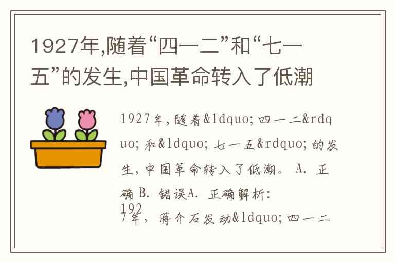 1927年,随着“四一二”和“七一五”的发生,中国革命转入了低潮。 A. 正确 B. 错误