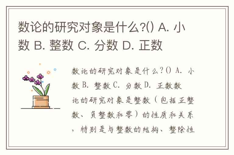 数论的研究对象是什么?() A. 小数 B. 整数 C. 分数 D. 正数