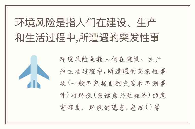 从环境风险的定义来看,题干中的“环境隐患”是导致突发性事故发生的潜在因素。在环境风险评价中,隐患可以涉及: