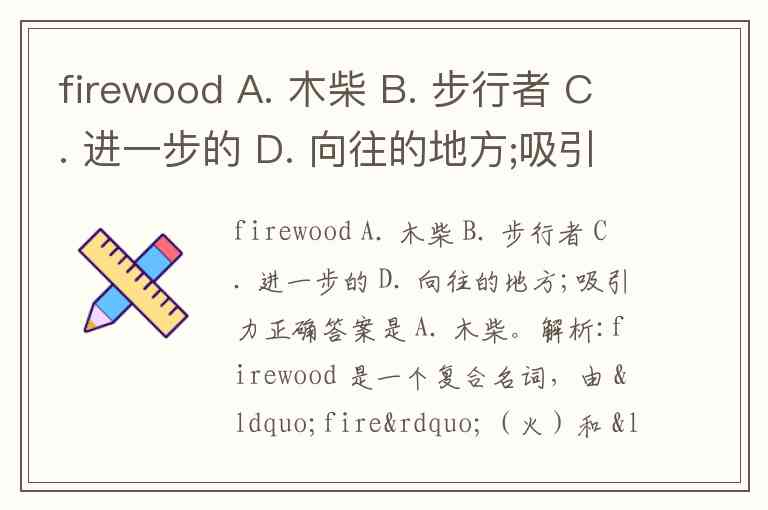 firewood A. 木柴 B. 步行者 C. 进一步的 D. 向往的地方;吸引力