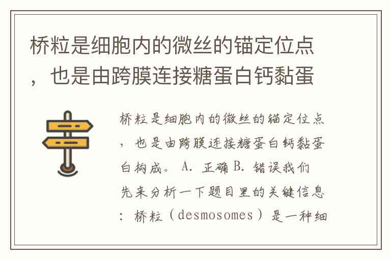 题中描述“桥粒是细胞内的微丝的锚定位点” —— 这是不准确的。实际上,桥粒连接的细胞骨架成分主要是 中间丝(intermediate filaments,如角蛋白),而不是微丝(actin microfilaments)。微丝的锚定位点主要是黏着带(adherens junctions)和黏着斑(focal adhesions)等。