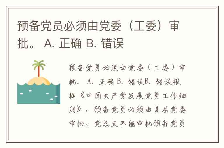 预备党员必须由党委(工委)审批。 A. 正确 B. 错误