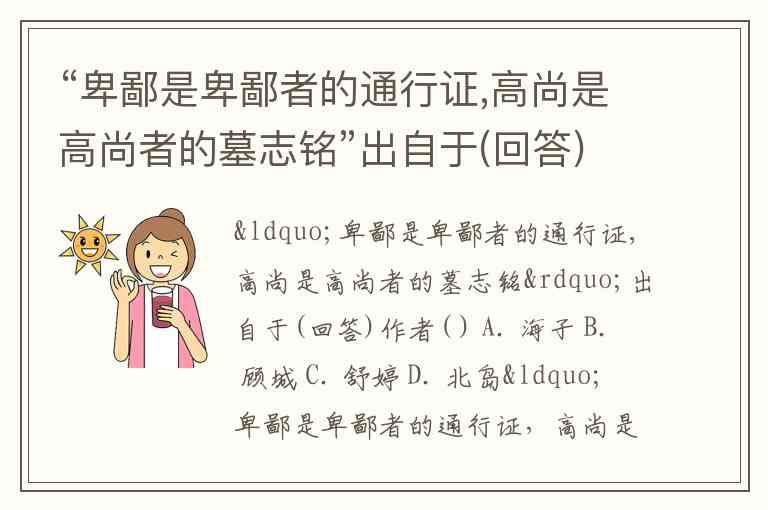 “卑鄙是卑鄙者的通行证,高尚是高尚者的墓志铭”出自于(回答)作者( ) A. 海子 B. 顾城 C. 舒婷 D. 北岛