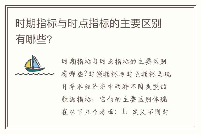 时期指标与时点指标是统计学和经济学中两种不同类型的数据指标,它们的主要区别体现在以下几个方面: