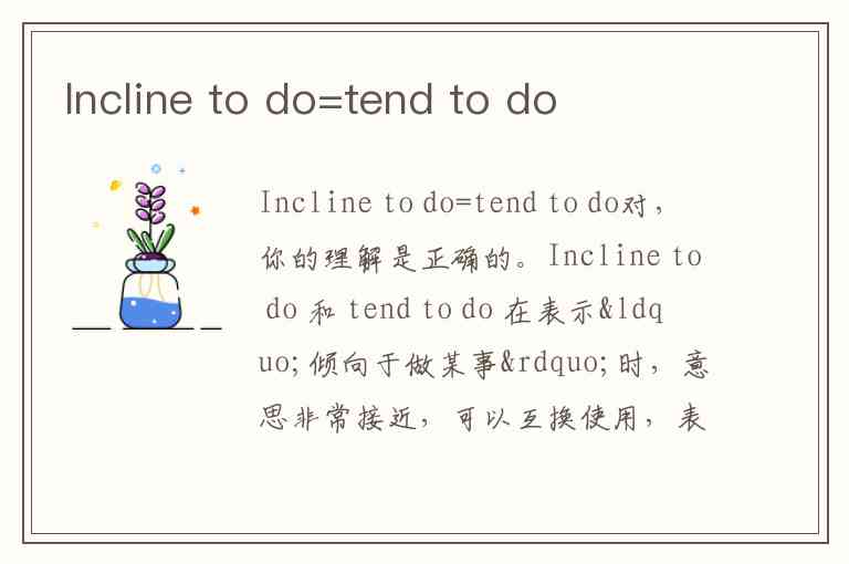 Incline to do 和 tend to do 在表示“倾向于做某事”时,意思非常接近,可以互换使用,表示一种习惯、自然倾向或可能性。