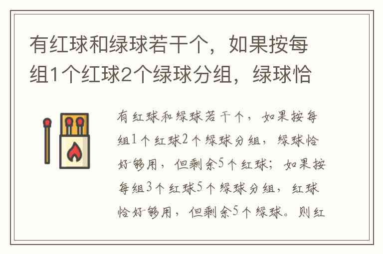 第二种:每组 3 红 5 绿,15 组用 45 红 75 绿,红球用光,绿球剩 80−75=5 ✓