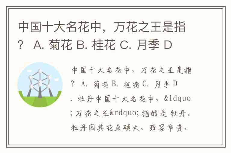 中国十大名花中,万花之王是指? A. 菊花 B. 桂花 C. 月季 D. 牡丹
