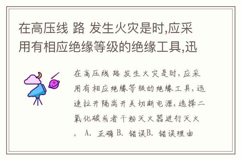 在高压线 路 发生火灾是时,应采用有相应绝缘等级的绝缘工具,迅速拉开隔离开关切断电源,选择二氧化碳或者干粉灭火器进行灭火。 A. 正确 B. 错误