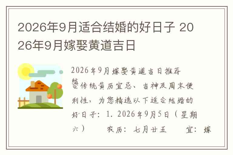 2026年9月嫁娶黄道吉日推荐