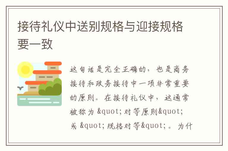 为什么送别规格要与迎接规格一致?体现尊重与重视: