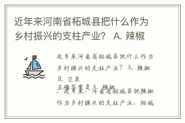 近年来河南省柘城县把什么作为乡村振兴的支柱产业? A. 辣椒 B. 芒果正确答案是 A. 辣椒。