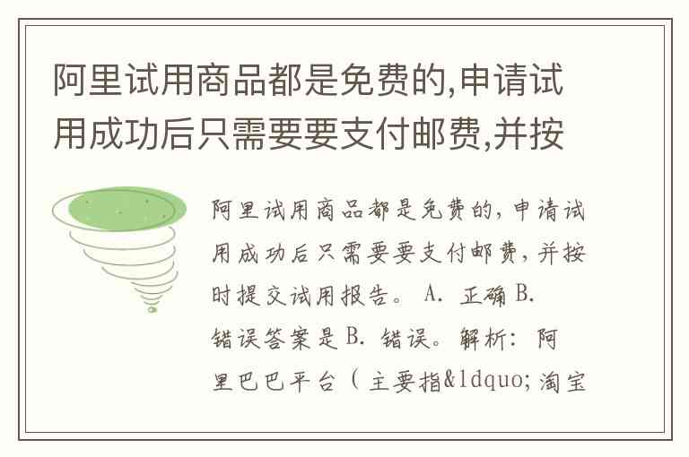 核心关键点(导致错误的原因):题目中说“只需要要支付邮费”,这个表述过于绝对,因为大多数情况下邮费也是免费的。更重要的是,题目中遗漏了“必须拥有试用资格”或“不能 guaranteed 100% 成功”等前提。